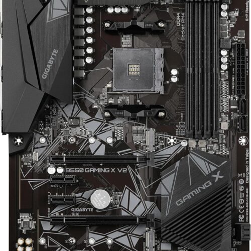 La scheda madre Gigabyte B550 GAMING X V2 supporta processori AMD Ryzen di 3ª generazione e serie 5000, inclusi modelli con grafica integrata Radeon. È compatibile con memoria DDR4 dual channel ECC e non-ECC su 4 DIMM. Il design di alimentazione digitale a 10+3 fasi con MOSFET a bassa resistenza garantisce stabilità e prestazioni elevate. Dispone di uno slot PCIe 4.0 x16, due connettori M.2 PCIe 4.0/3.0 x4 ultra veloci, e la scheda di rete gaming Gigabyte 8118 con gestione della larghezza di banda. Include porte USB 3.2 Gen1 Type-C frontali, uscite video HDMI e DVI-D, componenti audio di alta qualità con isolamento dai disturbi, supporto RGB FUSION 2.0 per LED indirizzabili, sistema Smart Fan 5 con sensori di temperatura e connettori ibridi, e la funzione Q-Flash Plus per aggiornare il BIOS senza CPU, RAM o GPU. Il design anti-zolfo aumenta la durabilità.