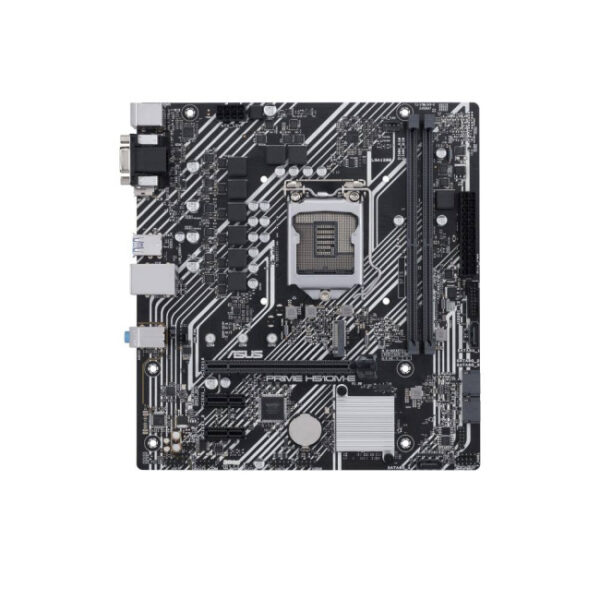 Scheda madre ASUS PRIME H510M-E micro ATX con socket LGA 1200, supporto CPU Intel® di 10ª e 11ª generazione, RAM DDR4 fino a 64GB, slot M.2 32Gbps, PCIe 4.0, USB 3.2 Gen 1 e rete Intel® 1Gb. Perfetta per PC desktop versatili e performanti.