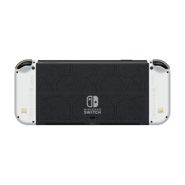 Il Nintendo Switch™ – Modello OLED Edizione The Legend of Zelda™: Tears of the Kingdom presenta un design ispirato al gioco, con dock bianca lucida decorata con simboli dorati e lo Stemma Hylian. Il retro della console e i Joy-Con mostrano motivi unici in verde e oro. Include schermo OLED da 7", supporto regolabile, porta LAN, 64 GB di memoria interna e audio migliorato. Compatibile con tutti i giochi e controller Nintendo Switch (gioco non incluso).