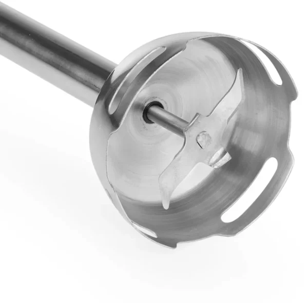 Frullatore a immersione da 1000 W con impugnatura ergonomica in gomma e due pulsanti luminosi. Dotato di asta in acciaio inox con quattro lame, ideale per preparare vellutate, zuppe, smoothie e puree. Include recipiente graduato, frusta e tritatutto. Facile da smontare e lavabile in lavastoviglie.