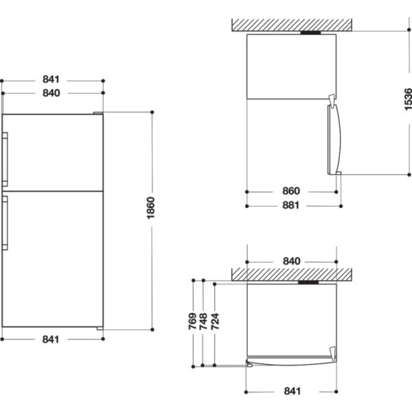 Frigorifero a libera installazione in acciaio inox con porte reversibili e maniglia integrata, offre una capacità netta totale di 587 L (445 L frigo e 142 L congelatore). Dotato di sistema No Frost, display integrato, ripiani in vetro, illuminazione LED, funzione Super Cool e Fast Freeze. Include 3 ripiani regolabili, 2 cassetti verdura, 6 balconcini porta, 2 ripiani freezer e zona Fresh. Classe climatica SN-T, livello sonoro 44 dB (classe D), efficienza energetica E, consumo annuo 296 kWh. Dimensioni: 840x750x1860 mm, peso 114 kg, garanzia 2 anni.