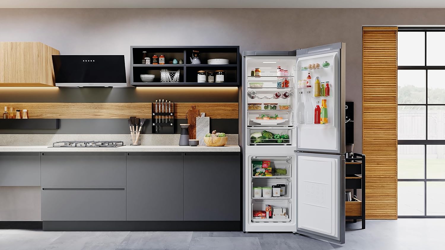 Il frigorifero combinato Hotpoint da 335 litri, modello HAFC8 TO32SX, è un elettrodomestico moderno e funzionale, caratterizzato dalla tecnologia No Frost che previene la formazione di ghiaccio, garantendo una conservazione ottimale degli alimenti senza la necessità di sbrinamento manuale. La finitura in silver conferisce un design elegante e raffinato, perfetto per qualsiasi cucina. Grazie ai suoi ampi spazi interni e alle diverse zone di refrigerazione, questo frigorifero permette di organizzare al meglio cibi freschi e surgelati, assicurando efficienza energetica e facilità d’uso.