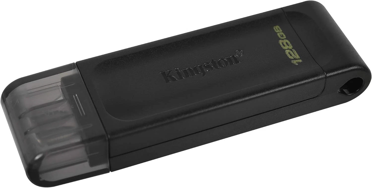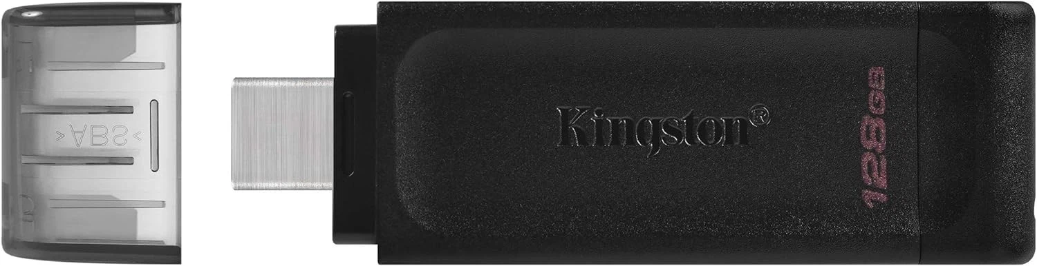 Kingston DataTraveler 70 – Chiavetta USB-C da 128GB in colore nero, nuova e leggera (7 g). Progettata per dispositivi USB-C, offre velocità elevate grazie allo standard USB 3.2 Gen 1. Compatta e facile da trasportare, ideale per espandere lo spazio di archiviazione in modo pratico e veloce. Dimensioni compatte: 5,89 x 1,85 x 0,89 cm.