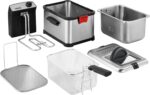 Questa friggitrice da 3 litri è un dispositivo autonomo con struttura singola, realizzata in acciaio inossidabile di colore nero e argento. Dispone di un termostato regolabile con temperatura massima di 190 °C, controllo rotativo, spia luminosa e funzione di protezione contro il surriscaldamento. È dotata di una zona fredda per evitare che i residui di cibo si brucino, migliorando gusto e aroma. La ciotola è rimovibile per facilitare la pulizia, ed è presente un manico comodo per il trasporto. Con una potenza di 3200 W e tensione di ingresso di 220-240 V, garantisce prestazioni elevate e facilità d’uso.