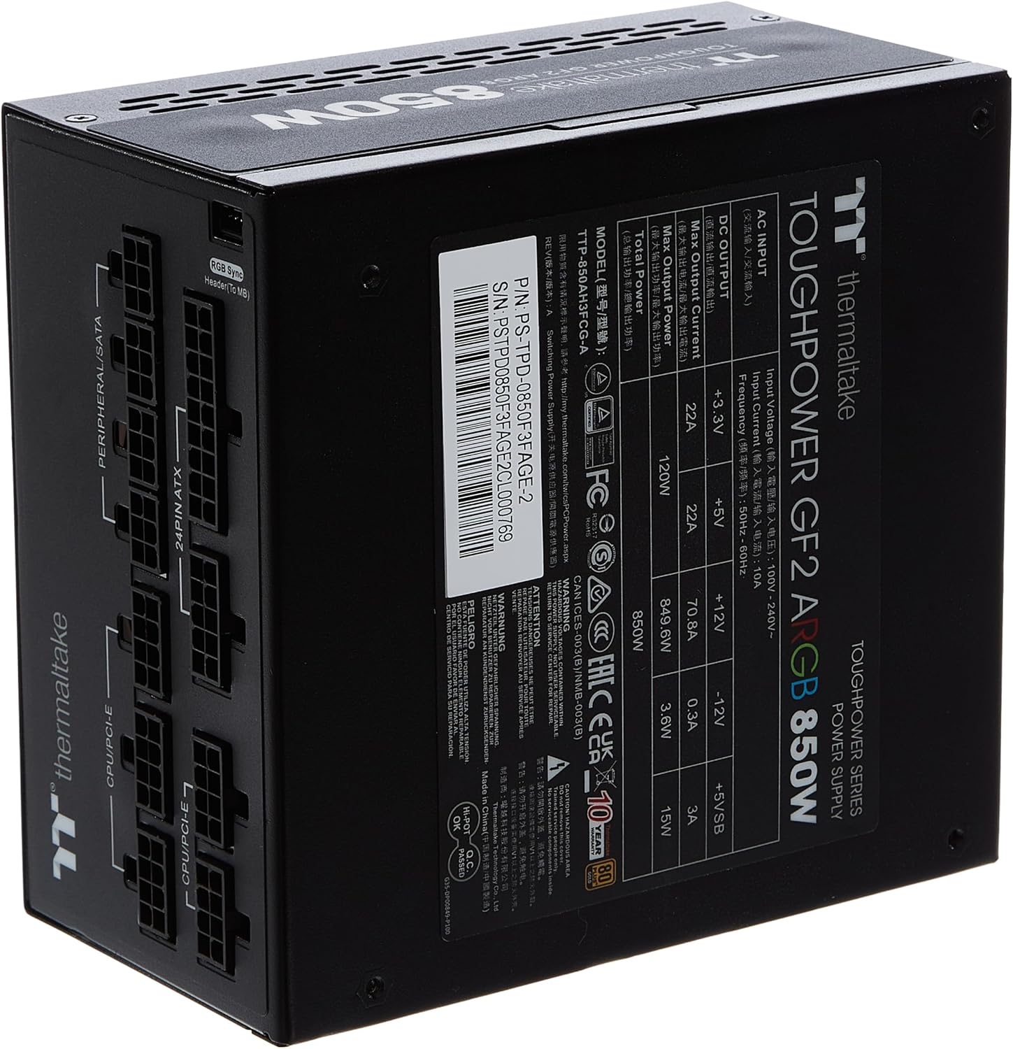 Thermaltake 850W Modulare Gold 80+ (modello PS-TPD-0850F3FAGE-2) è un alimentatore di fascia alta pensato per chi cerca prestazioni elevate, affidabilità a lungo termine e un design accattivante con illuminazione RGB sincronizzabile. Ideale per PC gaming e workstation avanzate, combina efficienza energetica con una gestione dei cavi completamente modulare e un’estetica moderna.