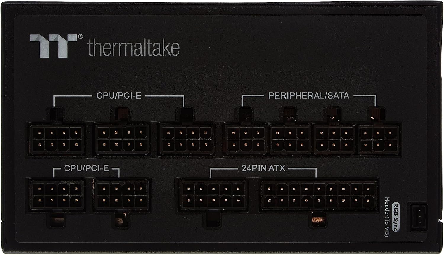 THERMALTAKE Alimentatore 850W Modulare Gold 80+ – Prestazioni elevate e design RGB con certificazione 80 PLUS Gold. Compatibile con ASUS Aura Sync, MSI Mystic Light, GIGABYTE RGB Fusion e Asrock Polychrome. Dotato di ventola Riing Duo RGB 140mm con 18 LED ARGB e pannello laterale illuminato. Ideale per build gaming stabili e personalizzate.
