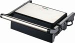Bistecchiera elettrica da 1500W con piastre antiaderenti apribili a 180°, led di funzionamento e vaschetta raccogli grasso. Compatta e potente, ideale per una cottura sana e veloce.
